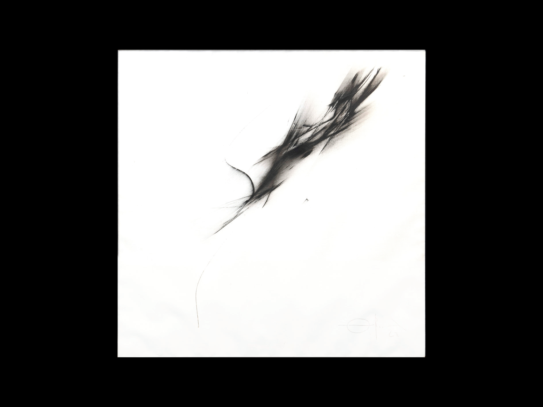This black-and-white painting was completed during Fernando Zobel's Serie Negra period (1959-1962), which was characterized by his "energetic gestures...balanced by the discipline and restraint of Japanese sumi-e, given Zóbel’s affinity with Zen Buddhism."